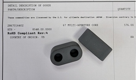 Fair-Rite Products, Corp. の 67 MULTI-APERTURE CORE 2867016402 入荷しました